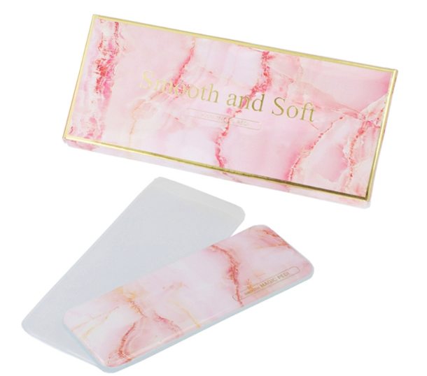 ガラスの表面の凹凸が鋭く尖っていないため肌や爪を傷めにくくケアできます。